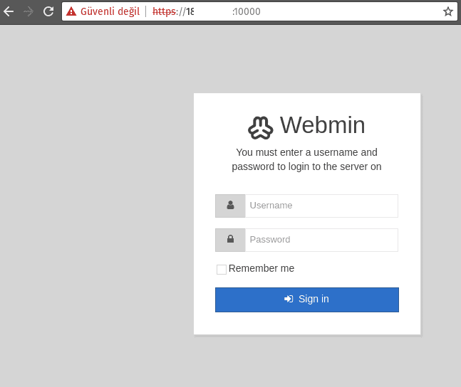 3-İşlem tamamlandığında tarayıcınıza HTTPS protokolünü kullanarak ip’nizin 10000 portunu yazdığınızda virtualmin paneline ulaşacaksınız ve sunucu erişim bilgileriniz ile giriş yapabilirsiniz.