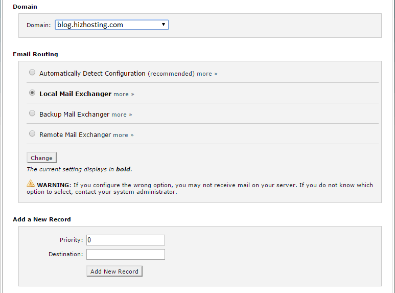 MX Entry kısmında bizi ilgilendiren 3 kısım bulunmaktadır. Bunlar; DomainEmail Routing ve Add a New Record. Öncelikle burada hangi domain için MX kaydı yönlendireceksek açılır menüden seçim işlemini yapıyoruz. Eğer maillerinizin hosting servisinizde aynı sunucuda çalışmasını istiyorsanız Local Mail Exchanger bölümü seçili olmalıdır. Ancak maillerin farklı bir sunucuda çalışmasını istiyorsak, mail hizmeti aldığımız firmanın bize vermiş olduğu MX kaydı bilgisini add a new record kısmındaki Destination bölümüne yazmamız gerekiyor. Priorty kısmı öncelik anlamına gelir.Bu değerde mail hizmeti aldığınız firma tarafından size verilir. Bu bilgileri girdikten sonra üst kısımdan Automatically Detect Configuration seçeneğini işaretleyip kaydediyoruz. Girdiğimiz veriler doğru ise MX yönlendirme işlemimiz tamamlandı ve maillerimiz artık yönlendirmiş olduğumuz sunucu üzerinden çalışacaktır.