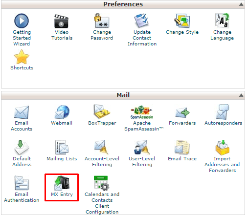 Giriş yaptıktan sonra ana menüde Mail bölümünden MX Entry kısmına giriş yapın.